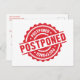 Postponed Event Cancellation Change The Date Postcard. Personalise this custom design with your own details.