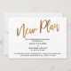 This suite's distinction is due to the modern, handwritten script font used for accent phrases. In this piece, the hand-lettered script font was used to create a simple graphic that reads "New Plan", large and bold. The graphic has been enhanced by a faux-metallic smooth gold effect. The wording in my placeholder text is geared towards a wedding that's being postponed, but if your event is being cancelled, this design could accommodate that need too. Use the template fields to add your personal details and make this unique, modern design your own. The background can be changed to any colour you prefer. Please reach out with any special requests or for customising assistance. // 105 //
