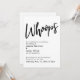 This suite's distinction is due to the bold, casual handwritten script font used for accent phrases. If you're in the position of needing to inform your wedding guests that you've had to change your big date, here is a humourous option. In this piece, the hand-lettered script font was used to create a simple graphic depicting the word "Whoops". Use the template fields to add your personal details and make this modern design your own. The white background can be changed to any colour you prefer. Please reach out with any special requests or for customising assistance. // 105 //
