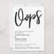 This suite's distinction is due to the bold, casual handwritten script font used for accent phrases. If you're in the position of needing to inform your wedding guests that you've had to change your big date, here is a humourous option. In this piece, the hand-lettered script font was used to create a simple graphic depicting the word "Oops". Use the template fields to add your personal details and make this modern design your own. The white background can be changed to any colour you prefer. Please reach out with any special requests or for customising assistance. // 105 //