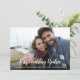 Announce your postponed wedding with this modern photo card. It features a horizontal photo frame that fills the entire front of the card. The design is accented with handwritten style text that reads: Our Wedding Update. The backside is sage green with a dot pattern and offers custom text for more details.