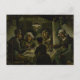 The Potato Eaters by Vincent Van Gogh, oil on canvas 1885, is a painting of a family of Dutch peasants gathered around their dinner table, eating potatoes and pouring coffee beneath an oil lamp in their humble cottage. Potato Eaters was the first ambitious composition with multiple figures after years of studies of single figures and portraits drawn from life while living among the people of Nuenen in the artist’s native Holland. Painted in thick strokes of impasto oil paint with deliberately crude, emphatic drawing capturing the character and earthiness of the subjects, the painting makes broad use of dramatic chiaroscuro reminiscent of Rembrandt and areas of heavy, dark earth colours such as dark brown and umber. Potato Eaters is the seminal masterpiece of Van Gogh’s early Dutch period, before moving to Paris and learning the methods and colour theories of the Impressionists.