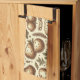 This is a kitchen towel. It's decorated with potatoes with a light yellow background.