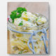 Potato salad in a jar on wooden plaque