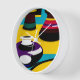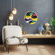 This unique, high-quality wall clock is vibrantly printed, protected by a high-impact plexiglass crystal face and features a pre-installed backside hanging slot for easy hanging and a non-ticking design.