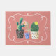 Southwestern themed front door mat done in rusted coral background and graphics of three colourful potted cactus plants. A white decorative border around the cactus gives this mat an finished look. Customise to add your own text or leave as is for a pretty way to welcome guests to your home.