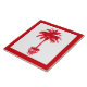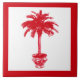 Digital rendition of a potted sago palm in a decorative planter with a solid border - Dark Chinese red with a white background