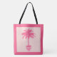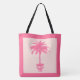 Digital rendition of a potted sago palm in a decorative planter with a solid border - Deep coral pink with a pastel coral pink background print bag