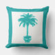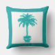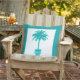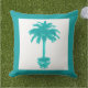Digital rendition of a potted sago palm in a decorative planter with a solid border - turquoise blue with a white background outdoor pillow