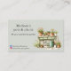 This business card features a watercolor illustration of garden pots, plants, tools, and a watering can. Designed for plant shops, florists, landscapers, or garden-related businesses, it highlights a nature-focused and handmade style. A professional way to share your contact details while reflecting your work with plants and gardening.