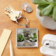 This keychain features a photo of three cute potted succulents in white containers with a seashell. Photo: © Z. Novosel