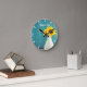Potted sunflowers over a rustic weathered wood plank painted in sea glass blue.