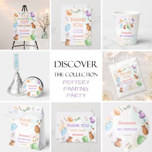 Colorful pottery painting birthday invitation designed for a creative kids art party. Featuring playful watercolor pottery elements and soft pastel tones, this invite is perfect for paint-your-own pottery studios, art workshops, or at-home craft celebrations. Easily personalize with your child’s name, age, date, and party details for a fun and artistic birthday experience guests will remember.