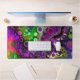 Desk mat in purple, pink, lime green, black and white fluid art pour painting style.