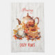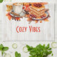 Bring a touch of warmth to your kitchen with this charming 'Pouring Cosy Vibes' kitchen towel. Featuring a beautiful teapot surrounded by autumn leaves, a cosy cup of coffee, and a plate of delicious pancakes, this towel is perfect for embracing the cosy vibes of fall. With its rustic wood background and vibrant fall colours, it's a delightful addition to your seasonal kitchen decor or as a thoughtful Thanksgiving gift.