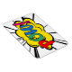 Comic book sound-effects explosion shape with colourful "Pow!" text.