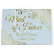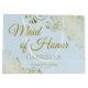 This beautiful gift bag is designed as a wedding gift or favour bag for the Maid of Honour. It features a beautiful powder blue background with golden faux foil lace curls and swirls in the corners. The gold script lettering reads "Maid of Honour" with a place to enter her name, the couple's name, and the wedding date. Fill with gifts, favours, candy, or any other wedding swag or thank you gifts. Beautiful way to thank her for being a part of your special day.