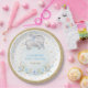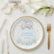 Stylish paper plates featuring a dreamy baby elephant, elegant blue roses, soft botanical greenery in green and gold, and sprinkles of sparkly stars. Click the "customise further" button if you wish to re-arrange and format the style and placement of the text.