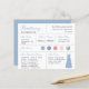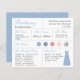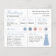 A powder blue and silver bridesmaid info card, including information about the wedding date and location, the wedding colours, the bridal party, the bridesmaid dress and a bridesmaid proposal message. The name of the bridesmaid and the titles are written in a dusty blue elegant script. In the lower right corner, there is a powder blue dress. In the centre, there are the wedding colours in circles. The colours, including the colour of the wedding dress, can be changed, with the exception of the silver circle, that is faux silver foil.