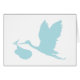 Powder blue silhouette shape of a flying stork carrying a bundle of joy. Cute new baby design for parents.