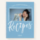 Photo recipe notebook, perfect for bridal showers. In a charming powder blue and white design, recipes is written in brush script beneath a photo of your choosing. A heart dots the i. Your photo fits into a frame of drawn white lines. Add name and year in modern letters.