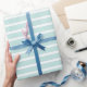 Powdered Turquoise White Horizontal Striped Wrapping Paper