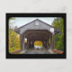 "Power House Covered Bridge" by Catherine Sherman. The Power House Covered Bridge is shown here situated among bright Autumn foliage. Also known as the School Street Covered Bridge, the bridge, built in 1872, crosses the Gihon River off State Route 100C in Johnson, Vermont. It was listed on the National Register of Historic Places in 1974. The bridge's name is from a now obsolete hydroelectric generating station just upstream from it, but electrical wires still run near the bridge. The builder of this bridge of Queen post truss design is unknown. In 1960, minor repairs were conducted to the abutments, approaches and floor. In 1995, it was recommended to reinforce the deck due to the large number of trucks using the road as a short cut. Steel I beams were installed underneath. In 2000, the bridge was destroyed by a heavy snow load. The roof collapsed and the side walls fell outward into the river below. Because of the installation of the steel I beams, the deck was self-supporting and actually survived. Guardrails were put up on the sides of the deck to keep the bridge open while its fate was decided. In 2002, the bridge was reconstructed and reopened on June 29, 2002. Trucks are no longer allowed on this one-lane bridge, one of the many charming one-lane bridges in New England.