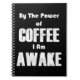 By the power of coffee I am awake! Funny text design about your love for always helpful coffee.