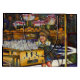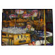 In an energetic market, a girl with a content expression rests beside stalls filled with fresh produce and flowers. The bustling atmosphere is captured through warm colours and intricate details in the setting and characters. Stalls overflow with vibrant displays, inviting exploration and curiosity. An original painting by well-season Fine Art Artist, Gaye Elise Beda.