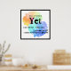 The Power of Yet, black decorative script on rainbow cloud background. Motivational mantras series. Bright colorful swirling rainbow clouds are an original graphic design. Bold black border. I cant do that - ends a story. I cant do that YET means anything is possible. Perfect for school, work, office, gym, teaching, coaching, graduation.. motivation to not give up.