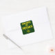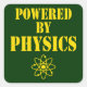 Powered By Physics - yellow stencil lettering and atomic graphic on a dark green background.
