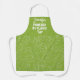 Elegant apron featuring a delicate floral white pattern on an apple green background, with the caption Powered by plants in white lettering decorated with tiny leaves. Easily customisable by adding your name.