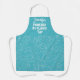 Elegant apron featuring a delicate floral white pattern on a turquoise background, with the caption Powered by plants in white lettering decorated with tiny leaves. Easily customisable by adding your name.