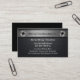 Modern construction business card template with image of a simulated metallic name banner with two fasteners to the top highlighting your company name or brand and carbon fibre style cool background art designed for a builder, remodeling or construction service.
