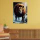 This product is a stunning canvas print of a powerful lion walking over water. The image captures the majestic beauty and strength of the lion, as well as the dynamic movement of the water. This product is perfect for anyone who loves tigers, wildlife, or nature in general.