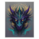 This painting features a stunning depiction of a mystical and ferocious dragon's head. The dragon is rendered in a realistic style in teal, gold and purple colour and it has a powerful and ferocious look. The painting has a sense of mystery and intrigue.