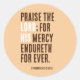 Praise The Lord - Thanksgiving Day Party - Classic Round Sticker. This Bible Verse sticker is inspired by the King James Version of 2 Chronicles 20:21-22, "And when he had consulted with the people, he appointed singers unto the LORD, and that should praise the beauty of holiness, as they went out before the army, and to say, Praise the LORD; for his mercy endureth for ever. And when they began to sing and to praise, the LORD set ambushments against the children of Ammon, Moab, and mount Seir, which were come against Judah; and they were smitten." Add your favourite quote. Enjoy!