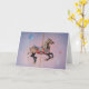 A dramatic black carousel horse with trappings in jewel tones of royal blue, deep red, purples and accented with carved pink rosettes. Feel free to personalize your purchase to make it your own.
