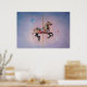 A dramatic black carousel horse with trappings in jewel tones of royal blue, deep red, purples and accented with carved pink rosettes. Feel free to personalise your purchase to make it your own.