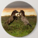 Button of two prancing wild Konik horses at sunset in the National Park Oostvaardersplassen in the Netherlands.