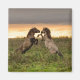Magnet with two prancing wild Konik horses at sunset in the National Park Oostvaardersplassen in the Netherlands.