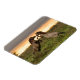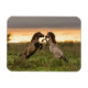 Rectangular photo magnet with two prancing wild Konik horses at sunset in the National Park Oostvaardersplassen in the Netherlands.