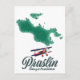 Praslin Seychelles beautiful island map decorated with a classic old red bi-plane.