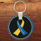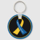 Show your support for the people of Ukraine with this keychain design featuring support ribbon in the blue and yellow colours of Ukraine's flag on black background with Pray for Ukraine text.