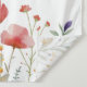 Tapestry with inspirational quote scripture depicts a floral watercolor wildflower design with simple red poppies and greenery. It features an encouraging Christian quote, "Pray More Worry Less." taken from Bible Verses Philippians 4:6-7.