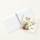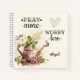 Personalised notebook, journal depicts an adorable little bird sitting on a watering can spout surrounded with garden flowers and leaves. It features Christian inspirational quote, "Pray more Worry less." Customise with a name or details of your choice.
