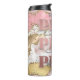 This graphic prominently features the message "PRAY on it PRAY over it PRAY through it" in bold pink and elegant black script. The repeated "PRAY" emphasizes the comprehensive nature of prayer. This spiritual encouragement is set against a luxurious, abstract background of swirling pink, white, and glittering gold, suggesting divine opulence and grace.