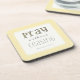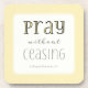 Coaster with short but powerful scripture verse from 1 Thessalonians 5:17, "Pray without ceasing" in a modern storyteller font. Yellow background; the word "Pray" accented with same yellow.
