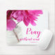 This beautiful scripture mouse pad features a photograph of a fuchsia pink peony flower with the bible verse "Pray without ceasing." 1 Thessalonians 5:16
