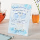 Extend heartfelt prayers and blessings to the expecting parents and their precious baby with our charming Blue Little Lamb In a Hot Air Balloon Pedestal Sign!